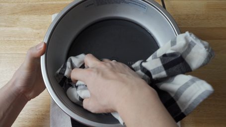 1. Unplug the Kamado and place a dry cloth underneath. Let it cool completely.