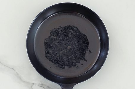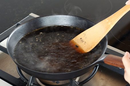 3. Remove the burnt residue with a wooden spatula and turn off the heat.