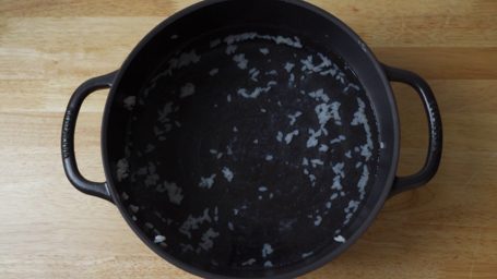 2. Drain and gently scrub the pot with a sponge and mild dish soap.