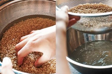 Washing brown rice: